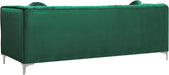 The Isabelle Collection by Meridian Furniture. Features beautifully designed velvet upholstery with custom chrome legs. This collection is guaranteed to be the highlight of any home. Throw pillows included.