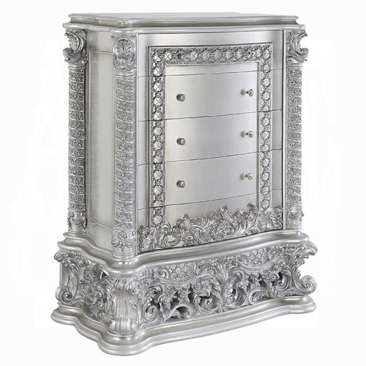 Luxurious style, sophisticated charm, and lustrous finishes are all included in the Vanaheim Bedroom Collection. Extravagant scroll floral design ...